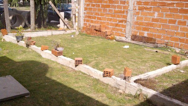Hay cimientos, encadenados y las bases hechas para futura construcción de local al frente.
