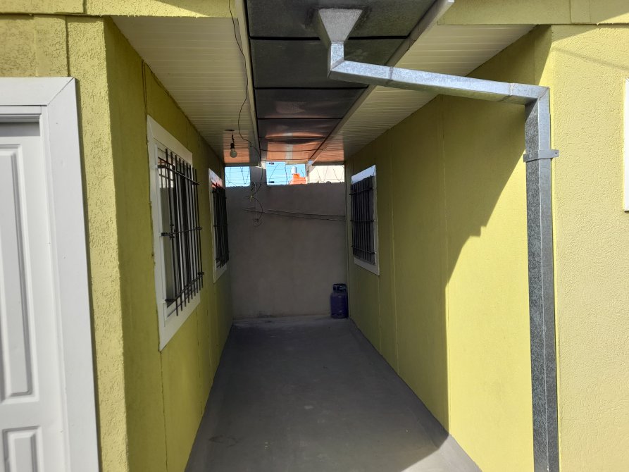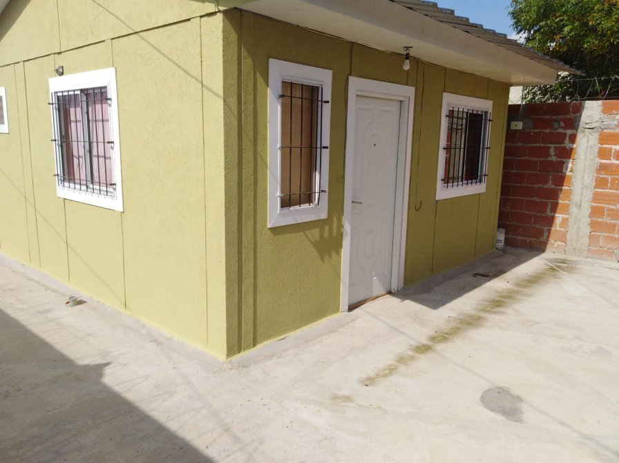 CON SUS PISOS CERAMICOS, TECHO DE CHAPA ACANALADA ATORNILLADAS Y LAS CANALETAS PARA DESAGUE, ABERTURAS VENTANAS DE ALUMINIO CON REJAS Y PUERTA DE ENTRADA ES DE CHAPA DOBLE INYECTADA.