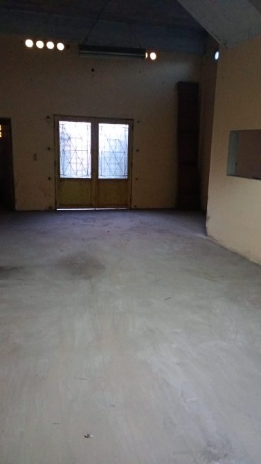 Uno de los locales tiene una pequeña oficina bajo la escalera, en uno de los laterales y una gran puerta de scceso al fondo.